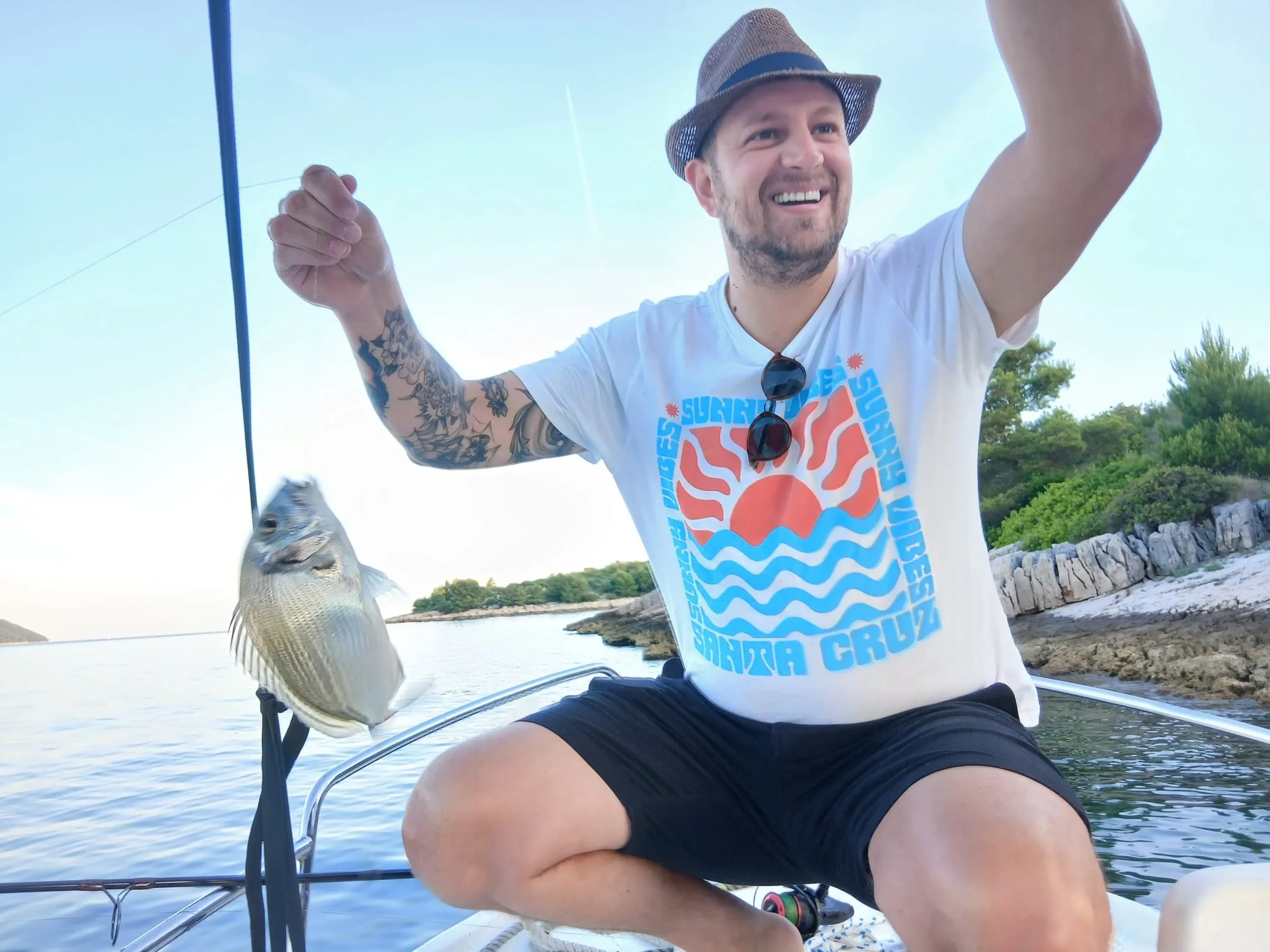 Our boats explore the pristine waters around Stari Grad Bay and beyond, targeting areas known for vibrant fish populations and beautiful underwater landscapes. Whether we’re drifting along rocky outcrops or trolling near deeper channels, every trip brings something new.